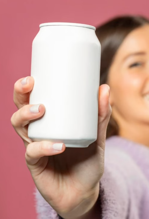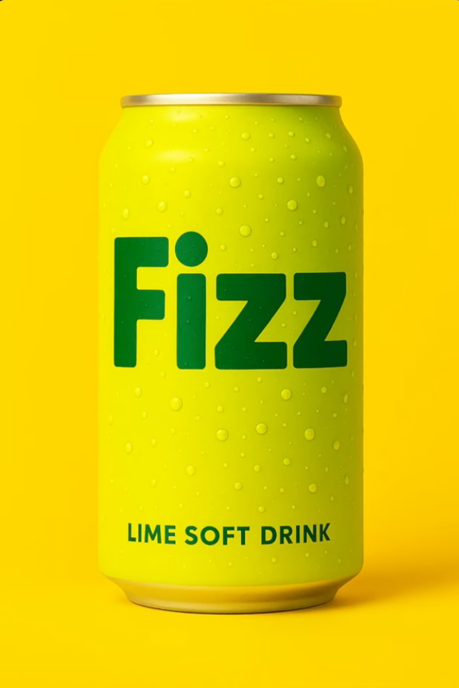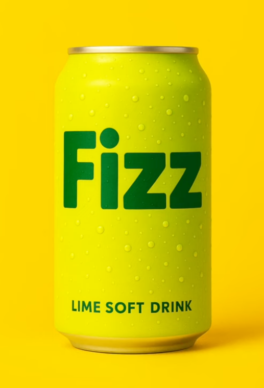 Prompt: Make a campaign image of a hand punching through the wall, holding a fizz can. Make the wall dark green so the bright Fizz contrasts nicely.